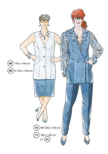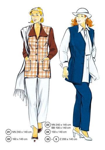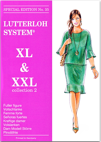 The XL and XXL Complete kit comes with: written instructions, sewing hints, 97 fashion-styles inside the Collection I and 64 fashion-styles inside the Collection II, with their corresponding pattern designs, a cardboard tailor curve and the blue XXL Lutterloh special scale metric-tape*.